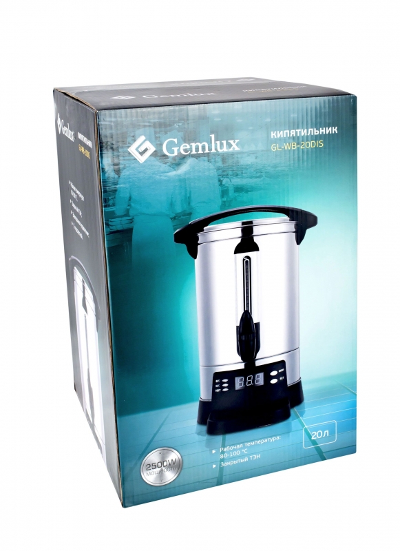Наливной кипятильник Gemlux GL-WB-20DIS предназначен для подогрева воды на предприятиях общественного питания и торговли. Модель оснащена терморегулятором, закрытым ТЭНом, мерным стеклом и сливным краном. Корпус выполнен из нержавеющей стали и пластмассы.