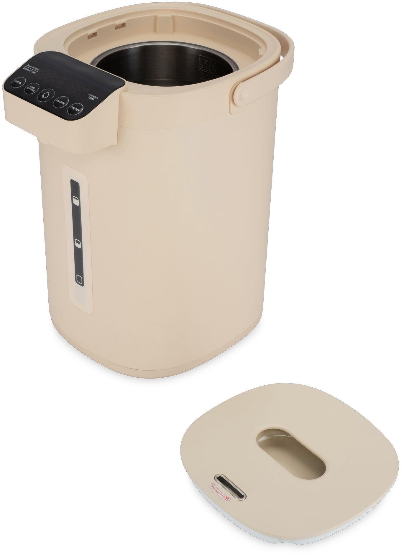 Термопот на все случаи жизни с большим функционалом, более компактный но вместительный, с плоской крышкой. Увеличенная мощность для более быстрого кипячения. Внутренняя колба из аустенитной стали 304 – более прочная к деформация и устойчивая к окислению и появлению коррозии.