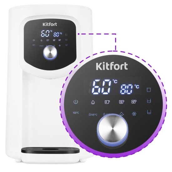 двойные стенки, дисплей, индикатор уровня воды, индикация включения, сенсорное управление, съемная крышка, Выбор температуры нагрева воды, блокировка крышки