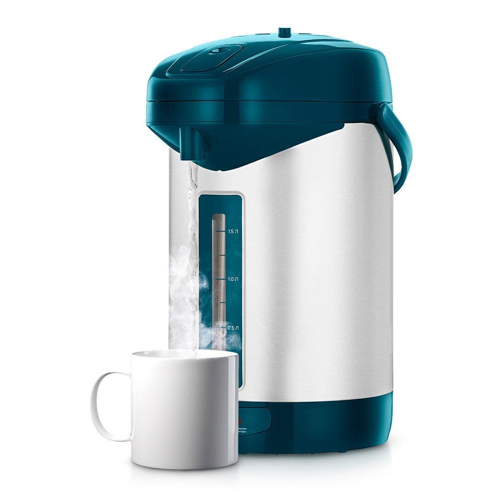 Благодаря двойным стенкам резервуара вода в термопоте будет остывать достаточно медленно. Корпус термопота состоит из пластика, а резервуар и внутренняя часть крышки из нержавеющей стали.