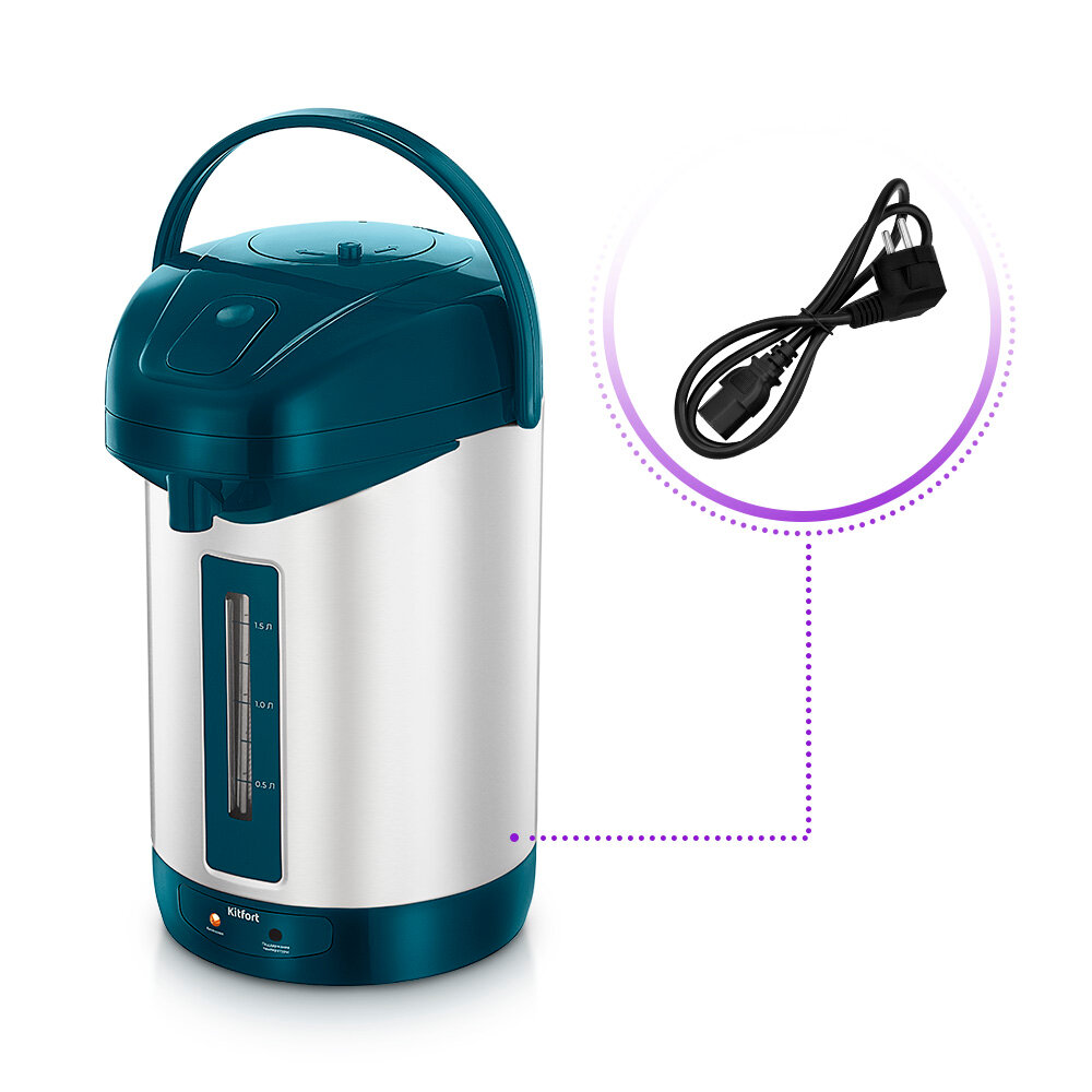 Термопот КТ-2534 предназначен для кипячения и поддержания горячей воды благодаря периодическому включению и отключению нагрева. В отличие от обычного чайника, он поддерживает температуру, обеспечивая горячую воду в любой момент.