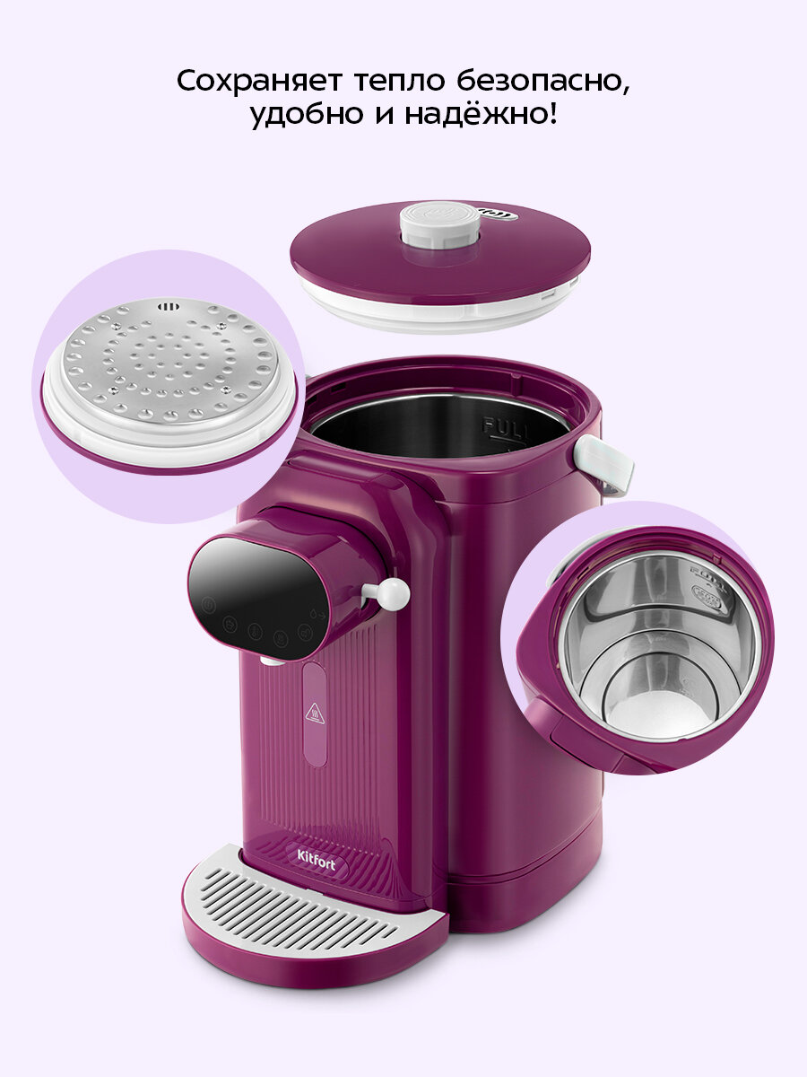 Термопот КТ-2535 — идеальный выбор для ценителей удобства. Он быстро нагревает воду и долго поддерживает её температуру. Благодаря стильному дизайну и компактным размерам термопот легко впишется в любой интерьер.