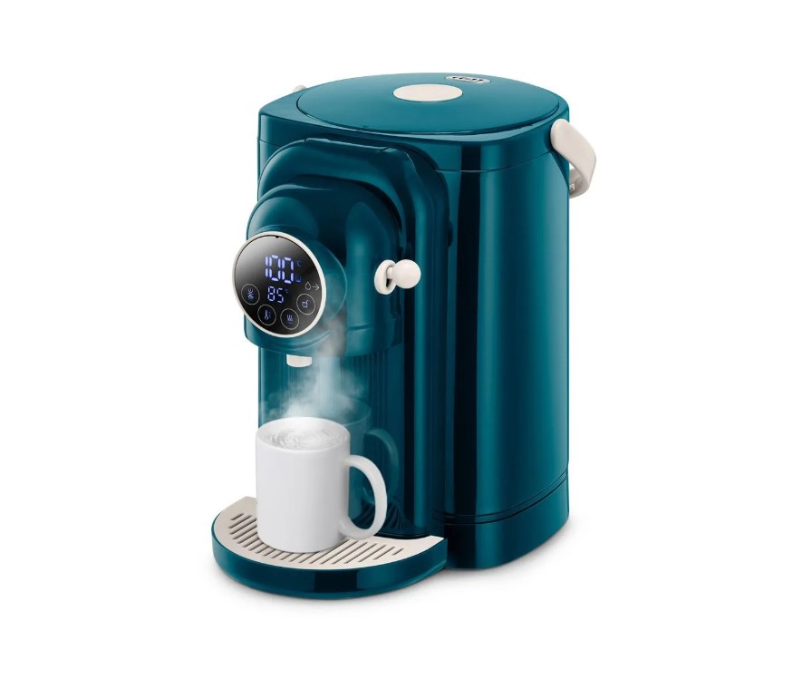 Термопот оснащён съёмным поддоном для капель с решёткой, в который будет попадать вся лишняя вода или в случаях переливания жидкости из кружки. Ножки с присосками не позволят скользить прибору по столу.