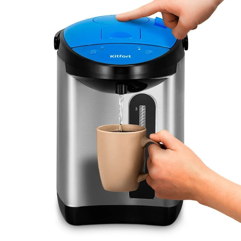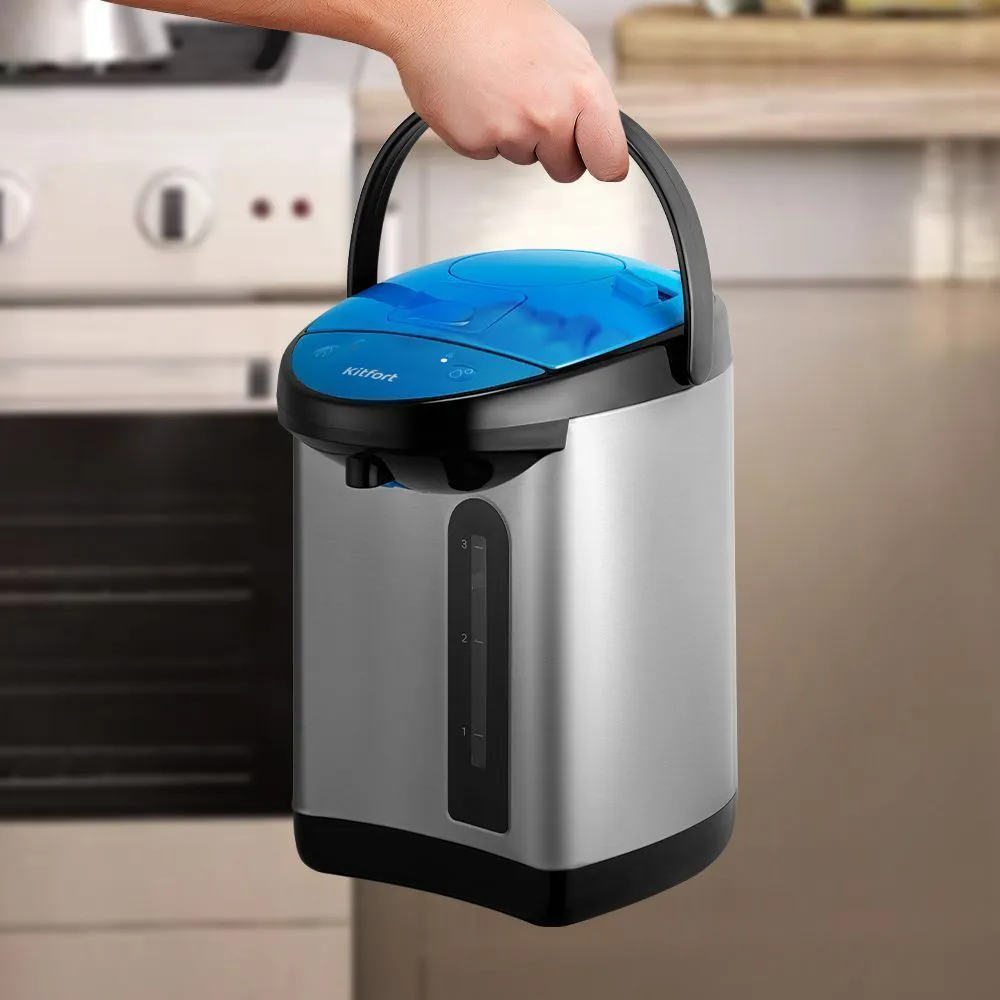 Ёмкость термопота составляет 3 литра - этого точно хватит на множество кружек чая! А чтобы его было легче переносить даже наполненным - в верхней части предусмотрена специальная ручка для переноски.