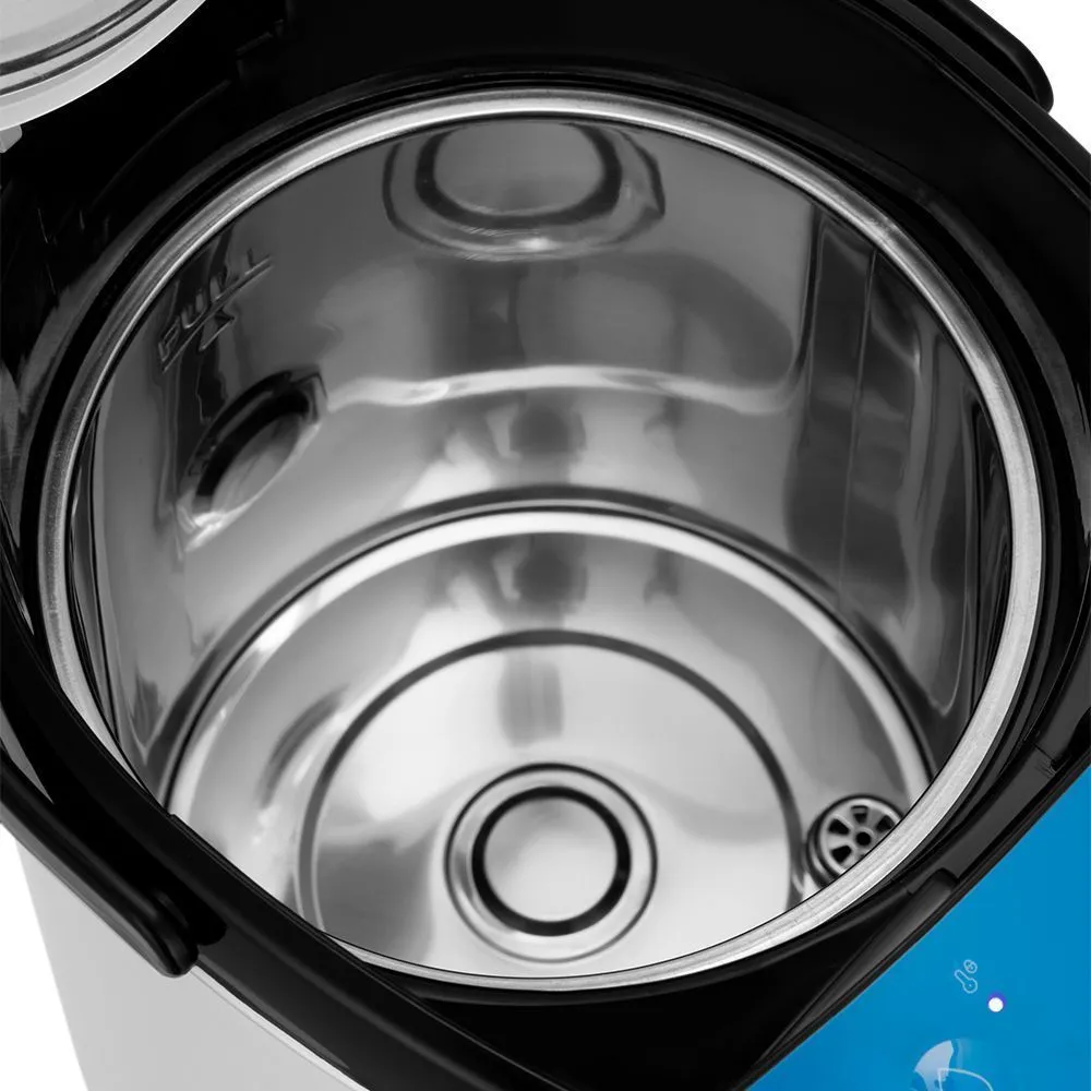 Корпус термопота состоит из пластика и нержавеющей стали, а резервуар — из нержавеющей стали. Внутренняя часть крышки также сделана из нержавеющей стали, поэтому вода не соприкасается с пластиковыми частями устройства.