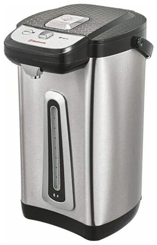 Чайник-термос с функцией кипячения и поддержания температуры на уровне 85-90ºС, подача воды кнопкой на панели и нажатием чашки, подсветка шкалы, колба из нержавеющей стали. Световые индикаторы режима работы.