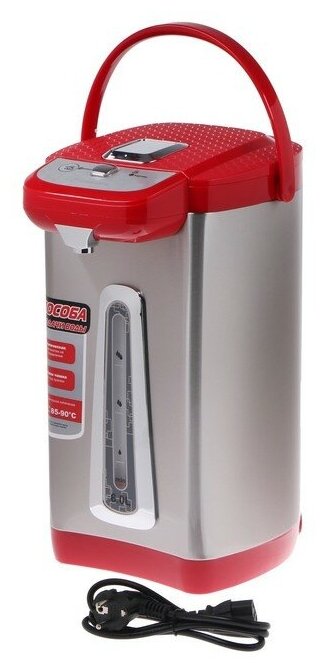 Чайник-термос с функцией кипячения и поддержания температуры на уровне 85-90ºС, подача воды кнопкой на панели и нажатием чашки, подсветка шкалы, колба из нержавеющей стали. Световые индикаторы режима работы.