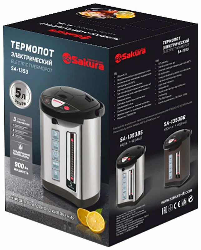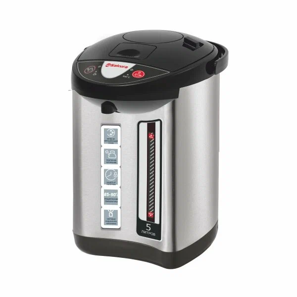 тип: термопот, материал корпуса: металл/пластик, объем: 5 л, тип нагревательного элемента: закрытый, дополнительные функции: поддержание температуры, особенности: индикатор уровня воды, индикация включения