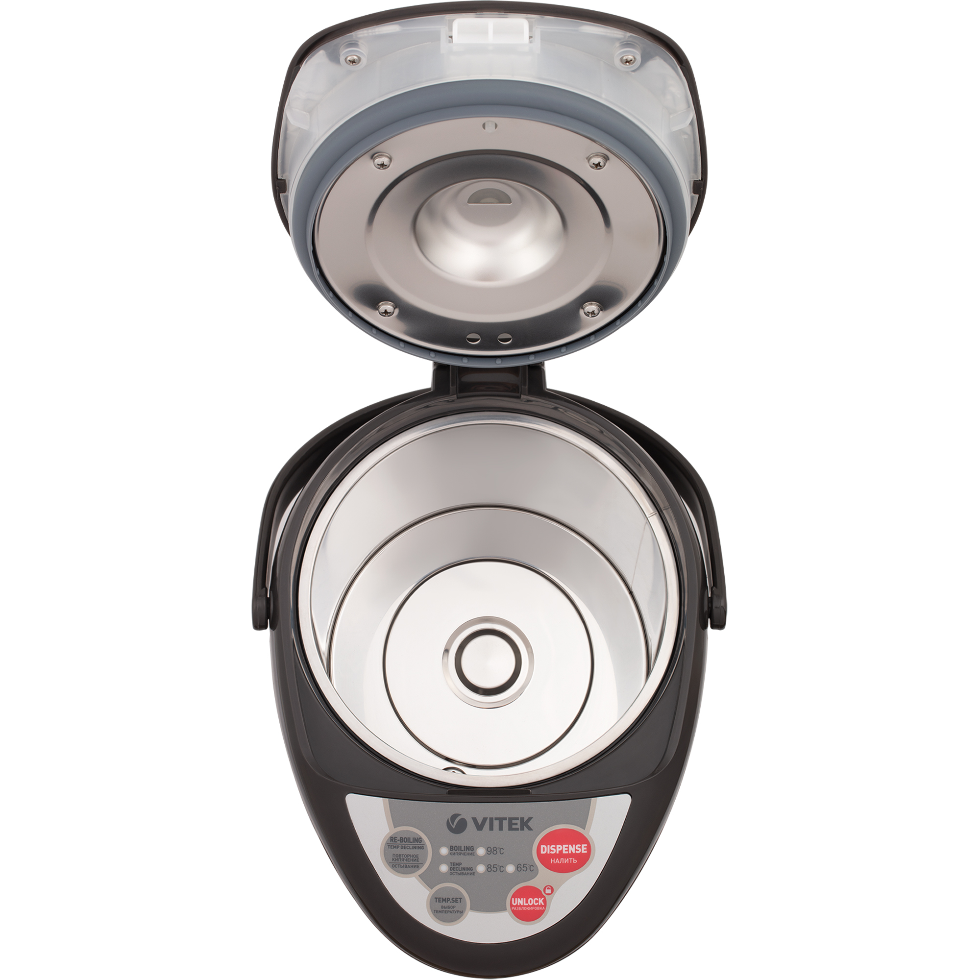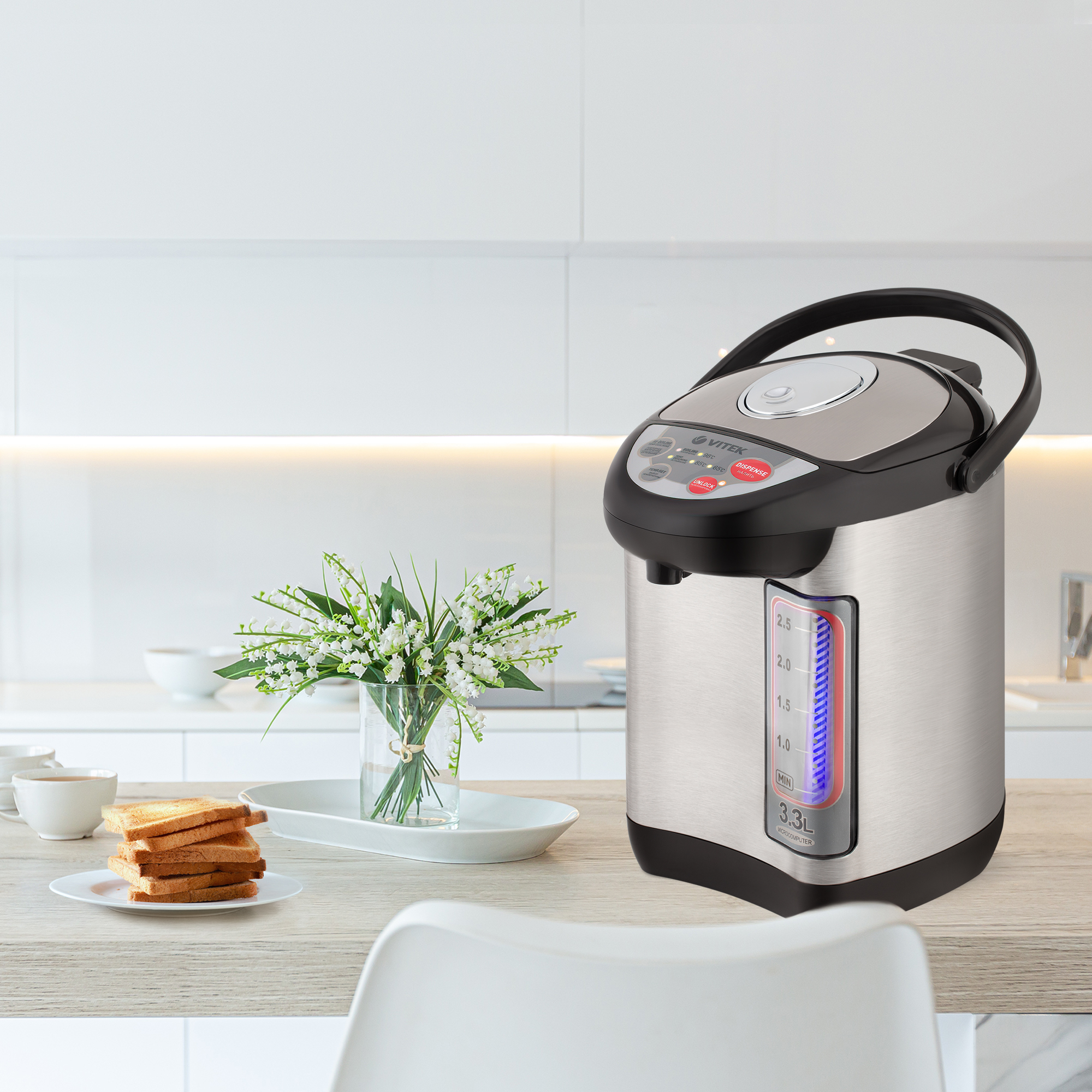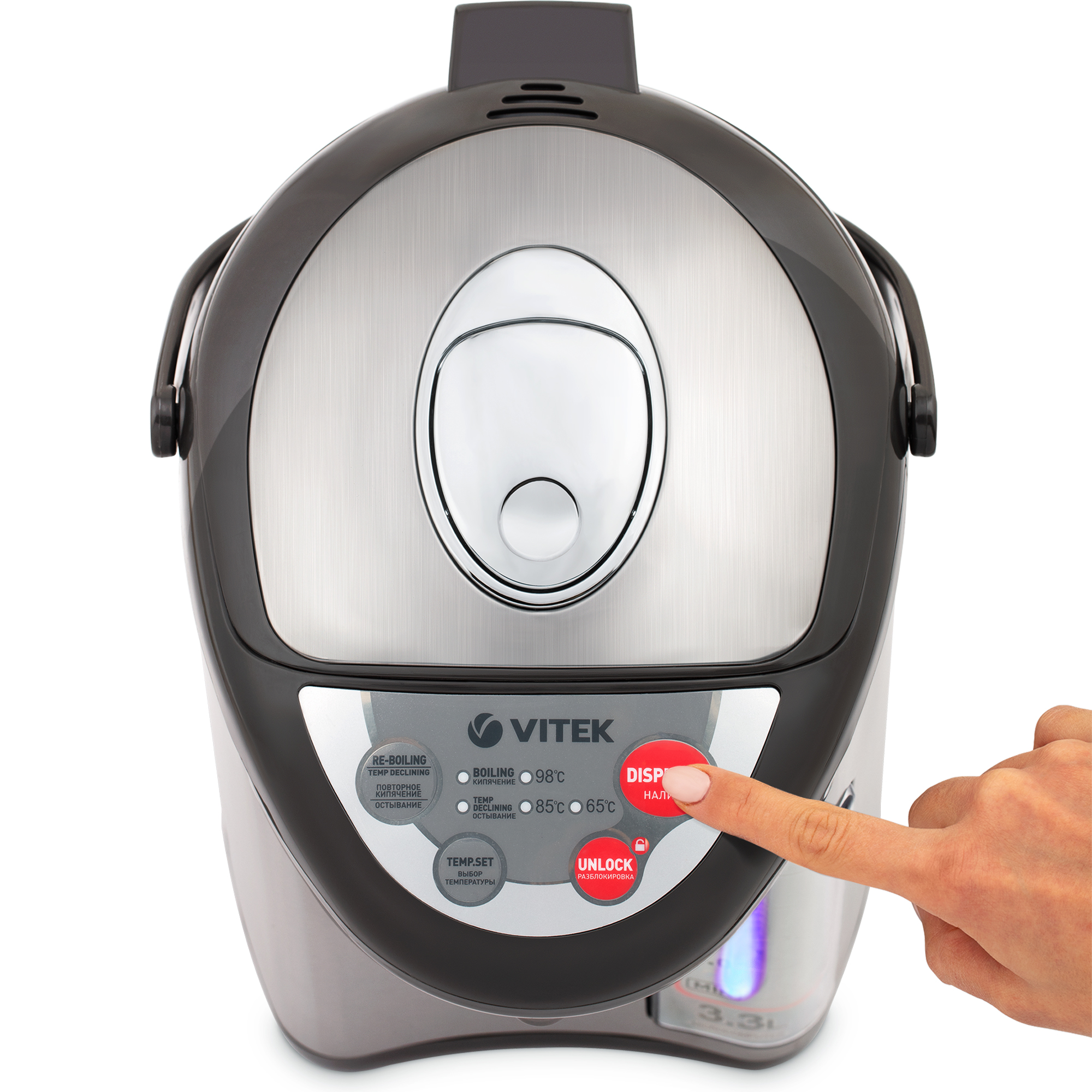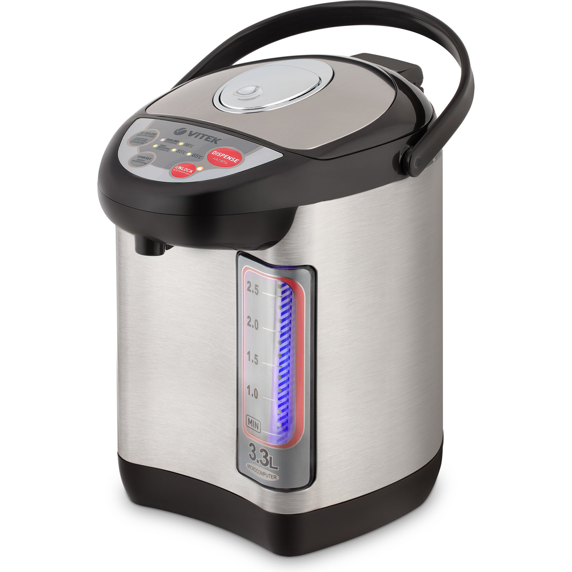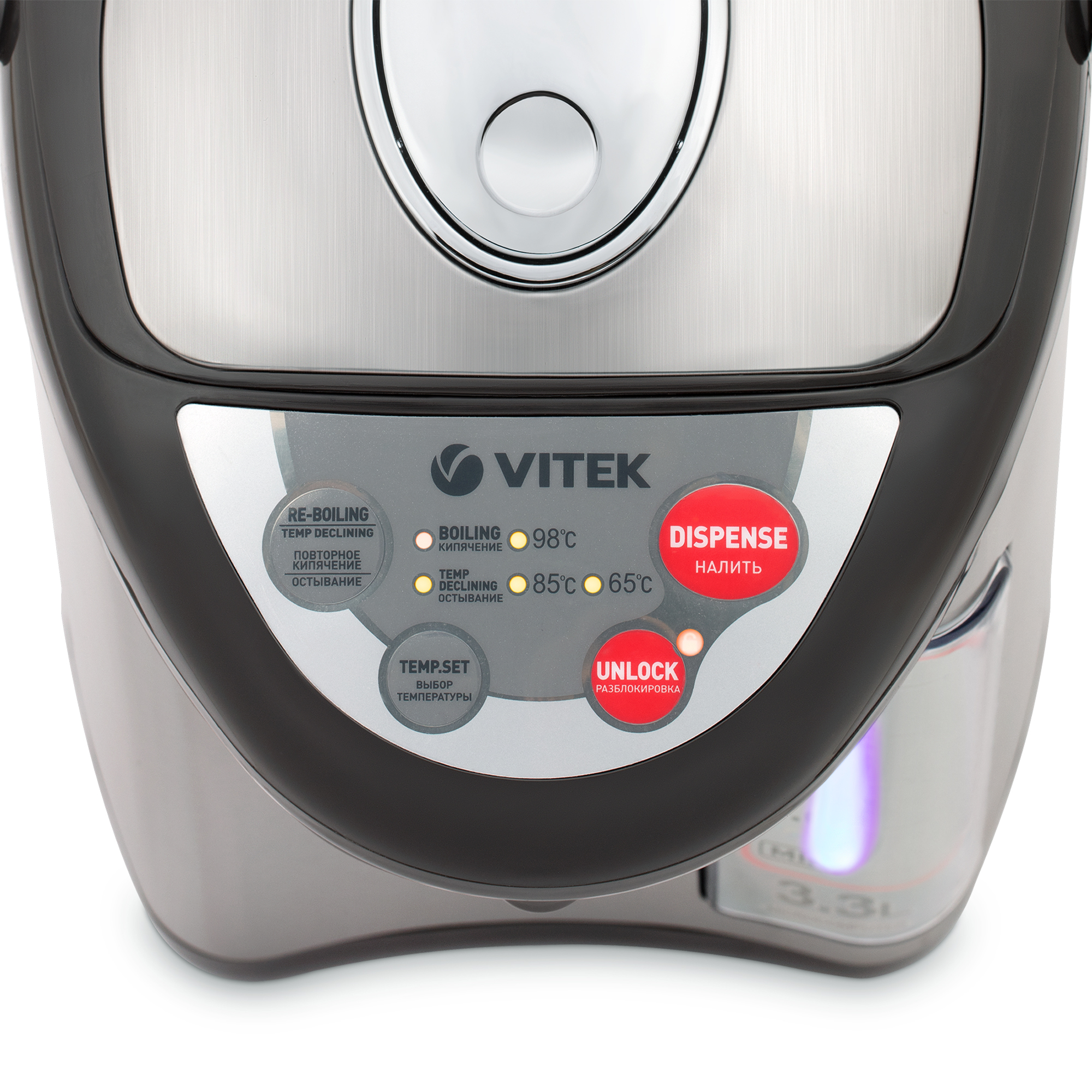 Термопот VITEK VT-1187 выполнен из нержавеющей стали, прост в управлении, имеет большой резервуар объемом 3,3 л. Благодаря индикатору уровня воды вы будете знать ее количество.