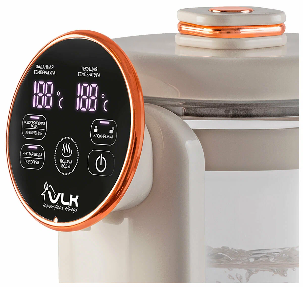 дисплей, индикатор уровня воды, индикация включения, сенсорное управление, съемная крышка, фильтр