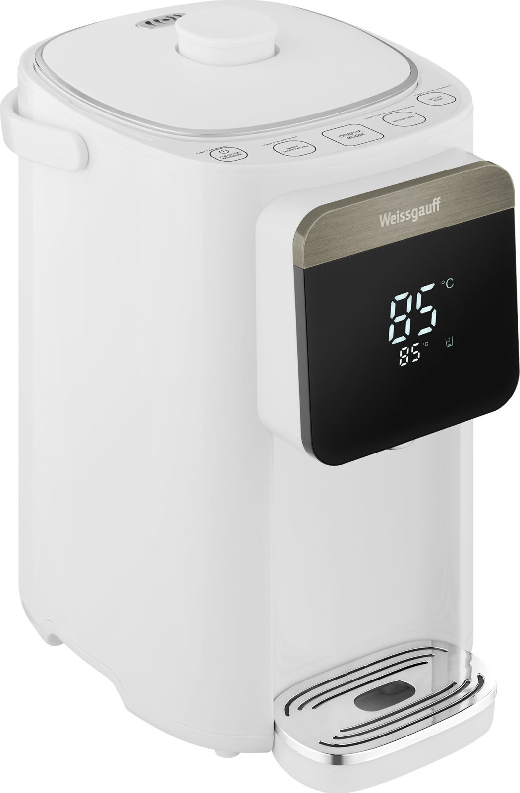 Дизайн, выполненный в белом цвете - станет финальным штрихом в совершенстве великолепного облика этой модели. Каждый раз, взаимодействуя с термопотом от Weissgauff, вы будете в полной мере ощущать, как он способен нагревать не только воду, но и согревать душу, став настоящим сердцем вашего уютного семейного домашнего очага!