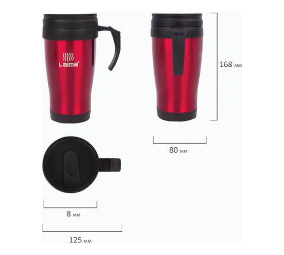 Автокружка обладает оптимальной формой для фиксации в держателе (подстаканнике) автомобиля, что позволяет использовать ее во время поездок.
