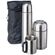 Походный набор упакован в удобную сумку черного цвета и состоит из термосов 1 л и 0,75 л с металлической колбой и в корпусе из нержавеющей стали серебристого цвета, с завинчивающейся пластиковой пробкой и с крышкой. Также в наборе есть термос-кружка объемом 300 мл из нержавеющей стали с пластиковой ручкой.