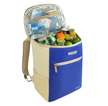 Рюкзак-холодильник «Турист» в цвете «Альпийский синий» из прочной влагоотталкивающей ткани имеет одно большое герметичное отделение, термоизоляционный слой Biofoam, толщиной 6мм и фольгированный теплоотражающий слой PEVA. Прочный материал легко моется и защищает рюкзак-холодильник от протекания. Дополнительно имеется внутренний карман в крышке рюкзака для аккумулятора холода и два боковых сетчатых кармана. Изоляционный слой 6 мм удерживает температуру внутри рюкзака до 60 часов.