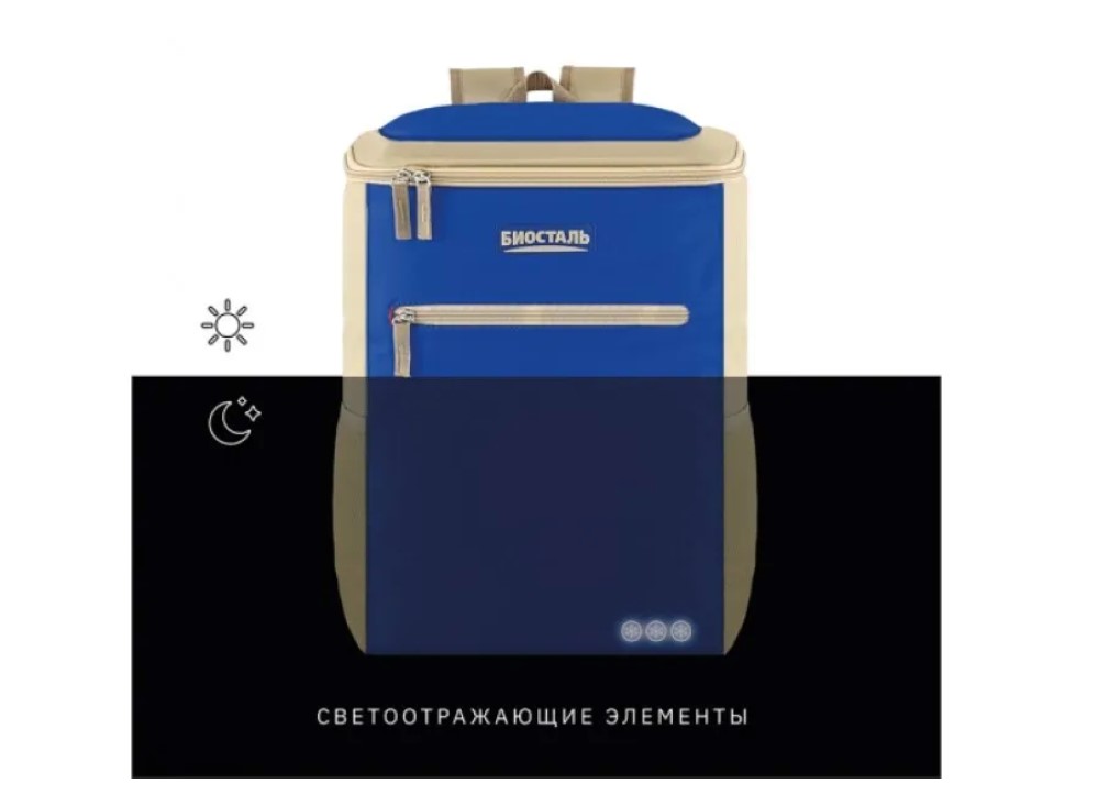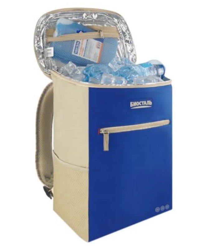 Рюкзак-холодильник «Турист» в цвете «Альпийский синий» из прочной влагоотталкивающей ткани имеет одно большое герметичное отделение, термоизоляционный слой Biofoam, толщиной 6мм и фольгированный теплоотражающий слой PEVA. Прочный материал легко моется и защищает рюкзак-холодильник от протекания. Дополнительно имеется внутренний карман в крышке рюкзака для аккумулятора холода и два боковых сетчатых кармана.