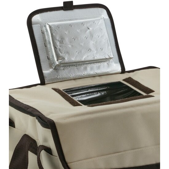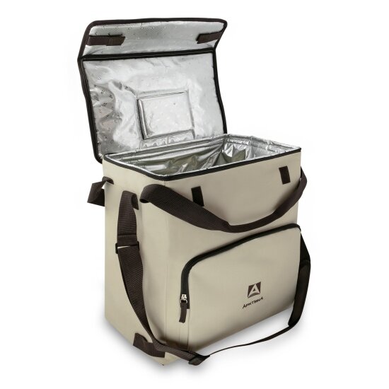 Классическая сумка-холодильник, с которой можно отправиться на пикник, на дачу или в дальнюю поездку. Эту модель отличает большой вместительный холодильный отсек и удобное окошко для быстрого доступа внутрь, благодаря которому увеличивается время сохранения продуктов холодными, ведь не надо лишний раз открывать крышку полностью. Внутри сумка покрыта износостойким фольгированным материалом, который легко моется влажной тряпкой.