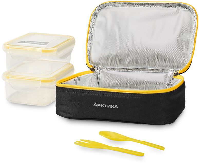 Ланч-сумка объемом 2л в комплекте с двумя контейнерами по 0,5л для горячих и холодных блюд. Контейнеры можно разогревать в микроволновой печи без крышки и мыть в посудомоечной машине. Вилка и ложка в комплекте.