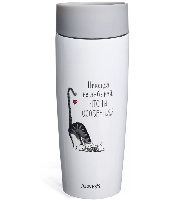Термокружка AGNESS - незаменимый помощник в повседневной жизни. Будь это дальняя поездка, обычная прогулка или просто рабочий день в офисе - любимый напиток всегда с собой.