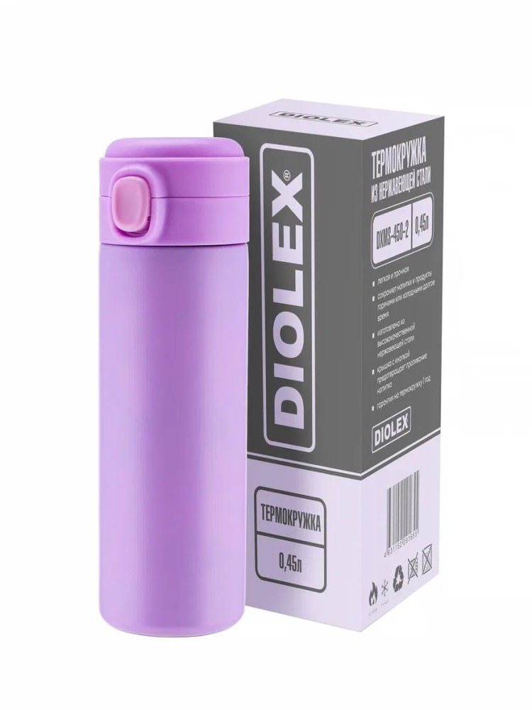 Термокружка Diolex DXMS-450-2 450 мл (с кнопкой - клапаном, сиреневая)