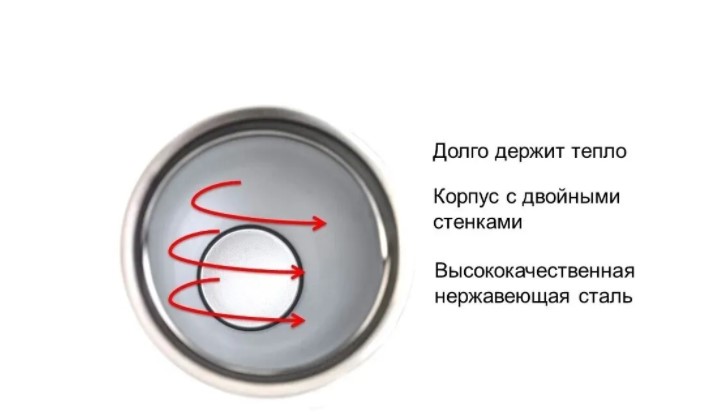 Уникальная крышка из высококачественного пластика на резьбе, позволяет пользоваться термокружкой одной рукой, удобно открывать и закрывать.
