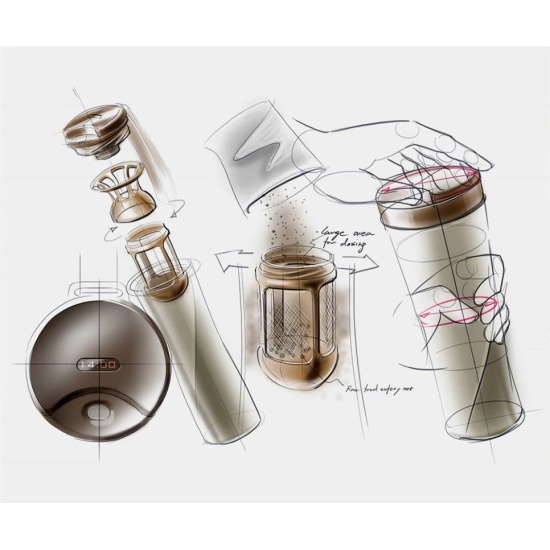 Гаджет от Kiss Kiss Fish имеет элегантные очертания. Вместе с тем, такая форма имеет функциональное предназначение: она удобно ложится в руку, когда вы льете из кружки напиток. Корпус выполнен из нержавеющей стали, которая устойчива к окислению. Все элементы легко моются.
