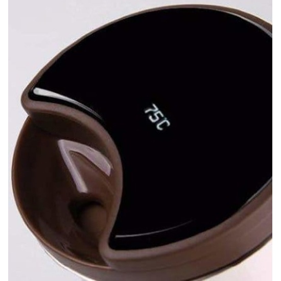 Модель имеет OLED дисплей, который отображает текущую температуру и то, сколько времени прошло после наполнения термокружки. Управлять сенсорным экраном очень просто: переключение между показом времени и температуры происходит с помощью движения пальцем вправо и влево. Источник питания – CR2032 батарейка. Она не входит в комплект.