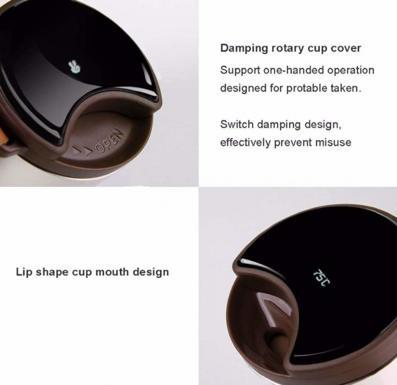 Модель имеет OLED дисплей, который отображает текущую температуру и то, сколько времени прошло после наполнения термокружки. Управлять сенсорным экраном очень просто: переключение между показом времени и температуры происходит с помощью движения пальцем вправо и влево.