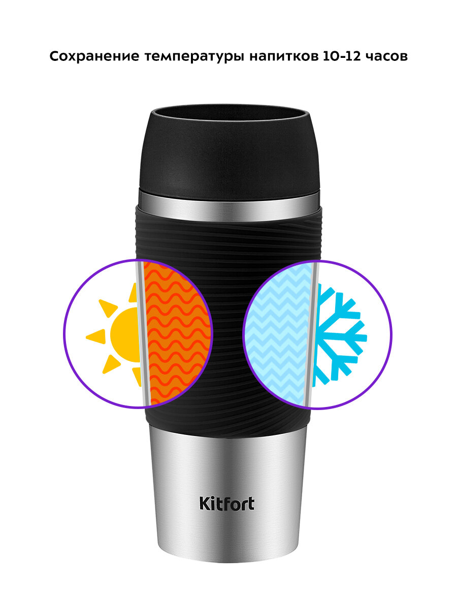 Элегантная термокружка Kitfort KT-1224 ёмкостью 400 мл — это простой и классный подарок. Подарите его своим хорошим друзьям, сёстрам, бабушкам и, наконец, себе! Термокружка обязательно будет вызывать тёплые воспоминания.