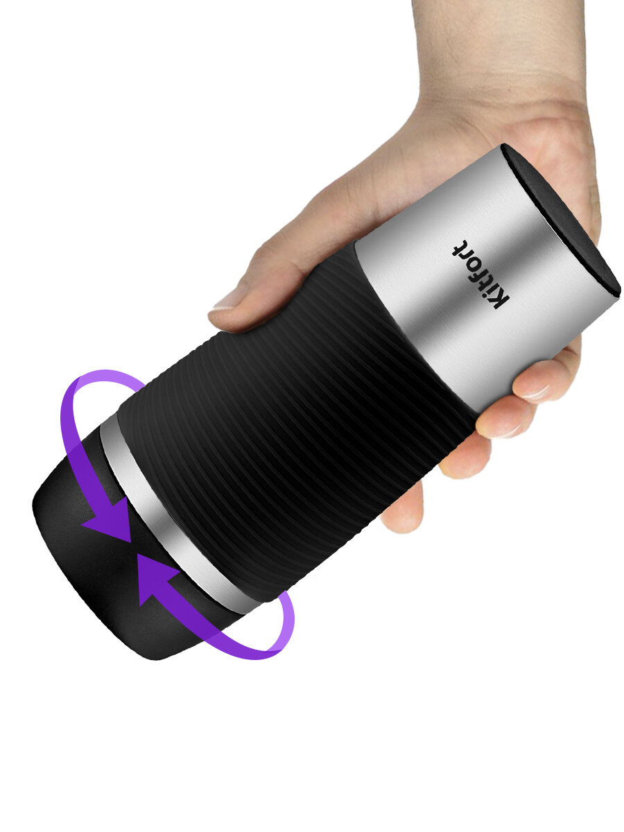 Рельефная силиконовая вставка на корпусе термокружки Kitfort KT-1224 не только препятствует скольжению ёмкости в руке, но и стильно выглядит.