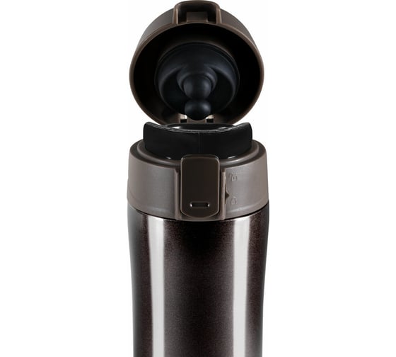 Термокружка обладает оптимальной формой для фиксации в держателе автомобиля, что позволяет использовать ее во время поездок. Термокружка снабжена откидывающейся крышкой с кнопкой, позволяющей с легкостью использовать ее одной рукой. Также, для защиты от непроизвольного нажатия кнопки, кружка имеет специальный защитный замок-предохранитель.