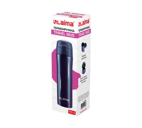 Термокружка LAIMA с двойной стальной стенкой изготовлена из нержавеющей стали марки 304 медицинского уровня. Сконструирована по вакуумной технологии.