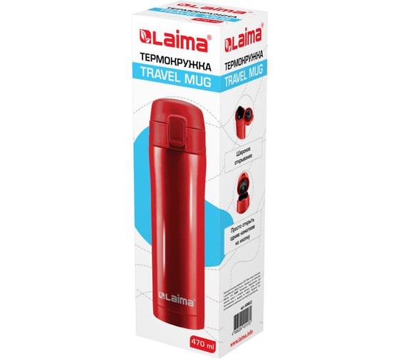 Термокружка LAIMA с двойной стальной стенкой изготовлена из нержавеющей стали марки 304 медицинского уровня. Сконструирована по вакуумной технологии.