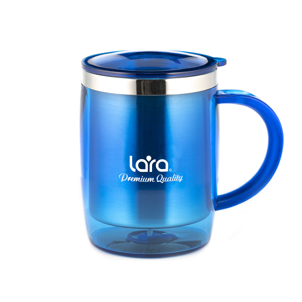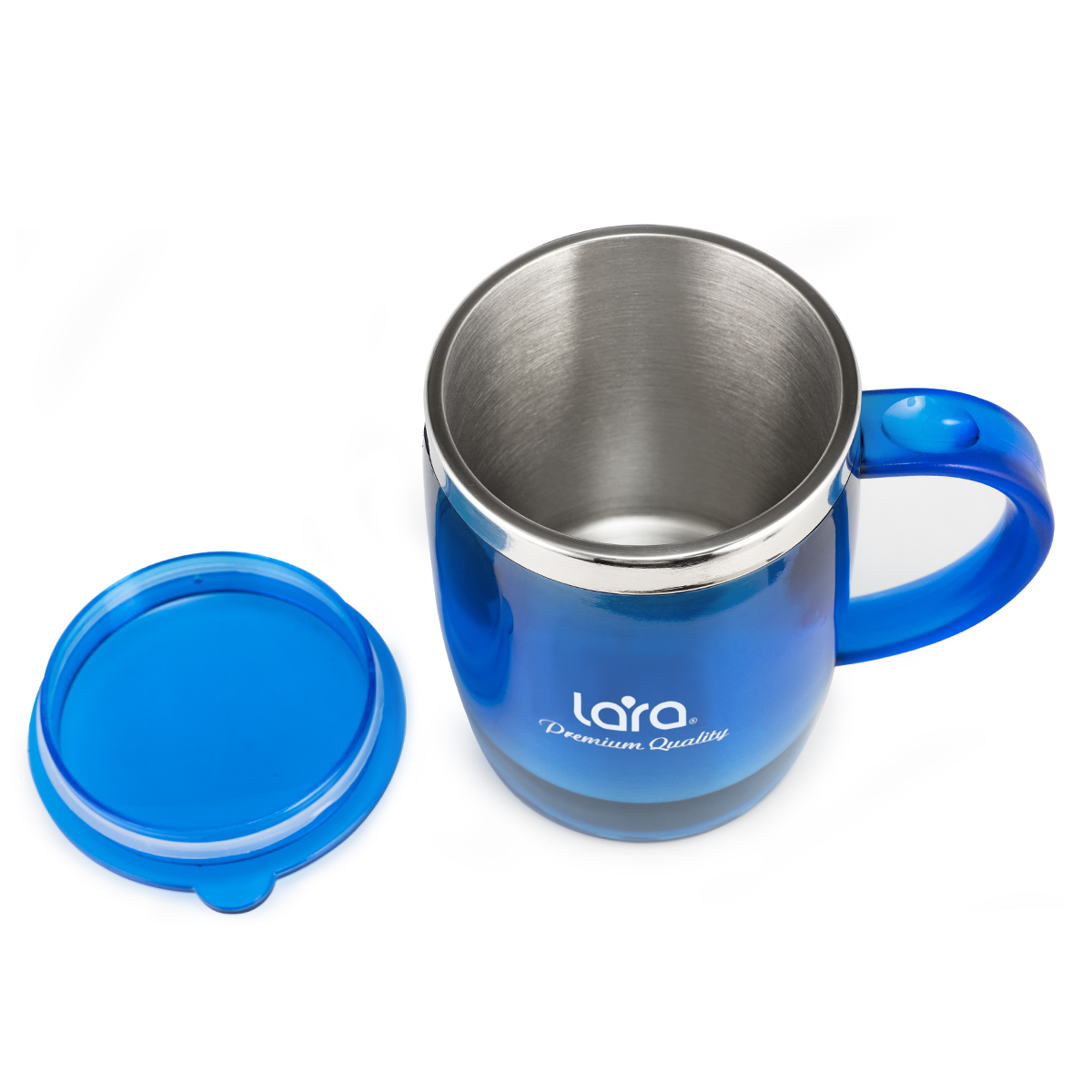 Удобная и яркая термокружка LARA LR04-37 с ручкой подходит для горячих и холодных напитков. Благодаря двойным стенкам напиток дольше сохраняет температуру. Конструкция крышки позволяет без труда снять ее с кружки. Благодаря мягкому покрытию донышка кружка устойчиво стоит на столе и не царапает его поверхность. Верхняя часть кружки и внутренняя колба изготовлены из нержавеющей стали.