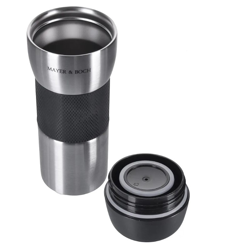 Термокружка Mayer&Boch изготовлена из нержавеющей стали, не содержащей токсичных веществ. Двойные стенки дольше сохраняют напиток горячим и не обжигают руки. Надежная крышка с защитой от проливания обеспечит дополнительную безопасность. Крышка оснащена клапаном для питья. Основание имеет силикованную вставку для предотвращения скольжения по поверхности. Оптимальный объем термокружки позволит взять с собой большую порцию горячего кофе или чая. Идеально подходит как для горячих, так и для холодных напитков. Такая кружка может быть использована во время отдыха, на работе, в путешествии, во время поездок в автомобиле.