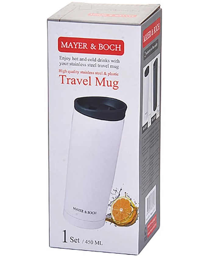 Термокружка MAYER & BOCH изготовлена из нержавеющей стали, не содержащей токсичных веществ. Двойные стенки дольше сохраняют напиток горячим и не обжигают руки. Надежная закручивающаяся крышка с защитой от проливания обеспечит дополнительную безопасность. Крышка оснащена клапаном для питья. Оптимальный объем позволит взять с собой большую порцию горячего кофе или чая. Идеально подходит для холодных напитков. Такая кружка может быть использована во время отдыха, на работе, в путешествии, во время поездок в автомобиле.