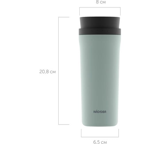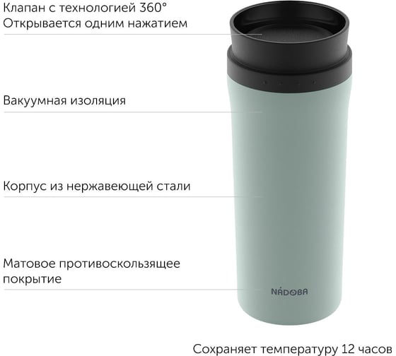 Термокружка NADOBA JUTA мятная, 0,5 л, нержавеющая сталь, 735311 подходит для работы, прогулок и путешествий.