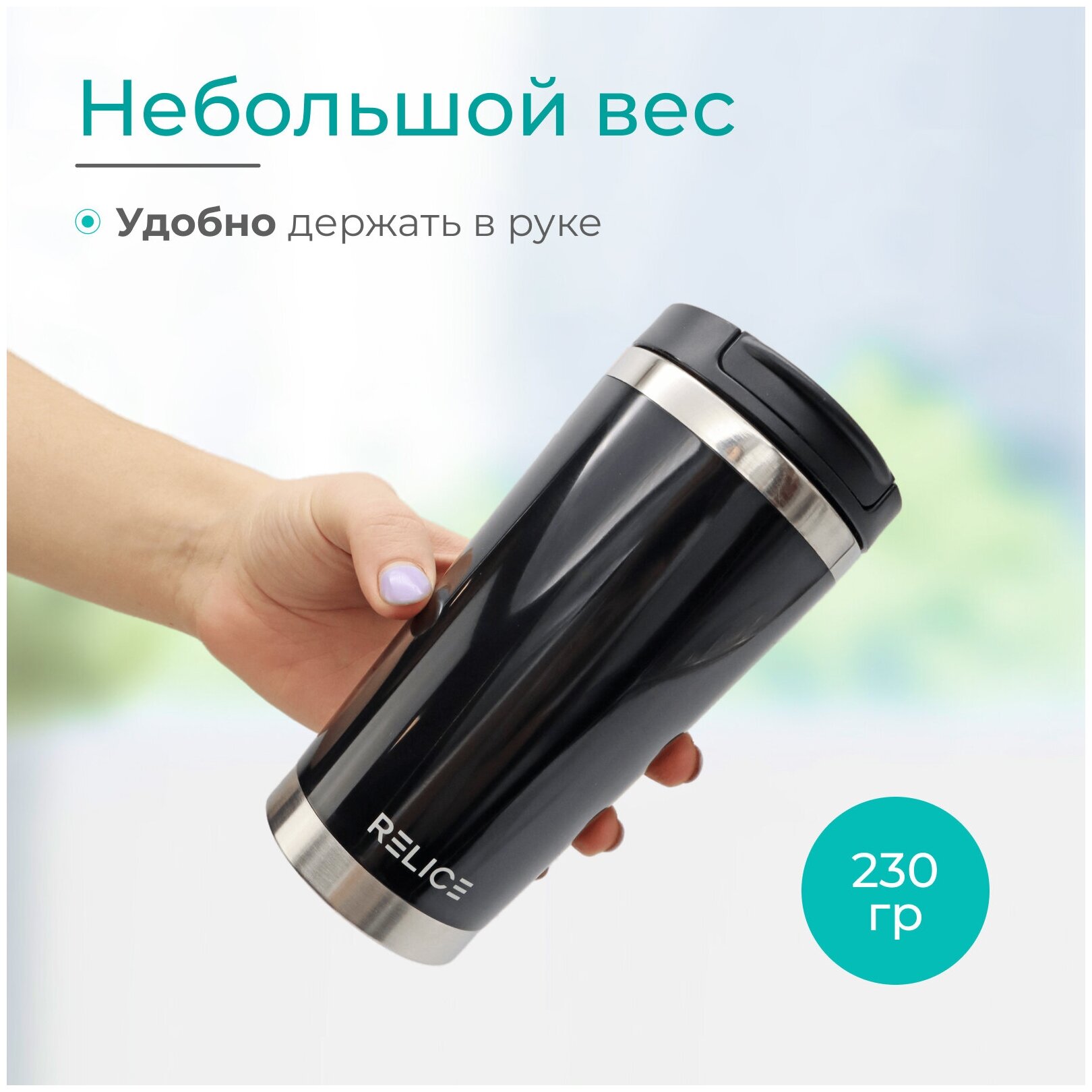 Благодаря двойным стенкам тепло и холод поддерживаются в течение 1 часа. Высокопрочный пластиковый корпус гарантирует длительный срок службы. Колба из нержавеющей стали не выделяет вредные вещества, не изменяет вкус и аромат напитков. Модель выполнена в компактном формате — габариты равны 17,5х9х9 см. Изделие весит 190 г.