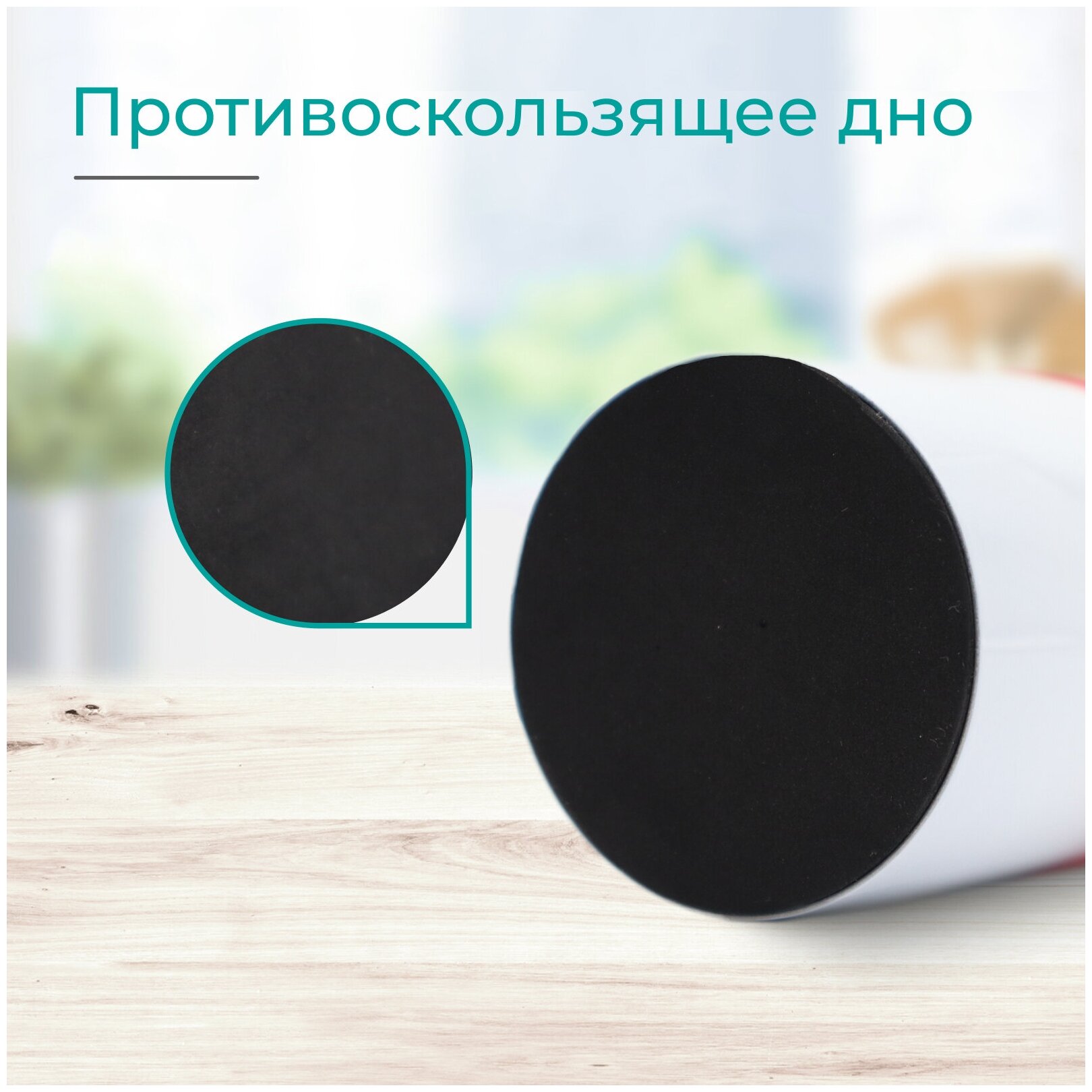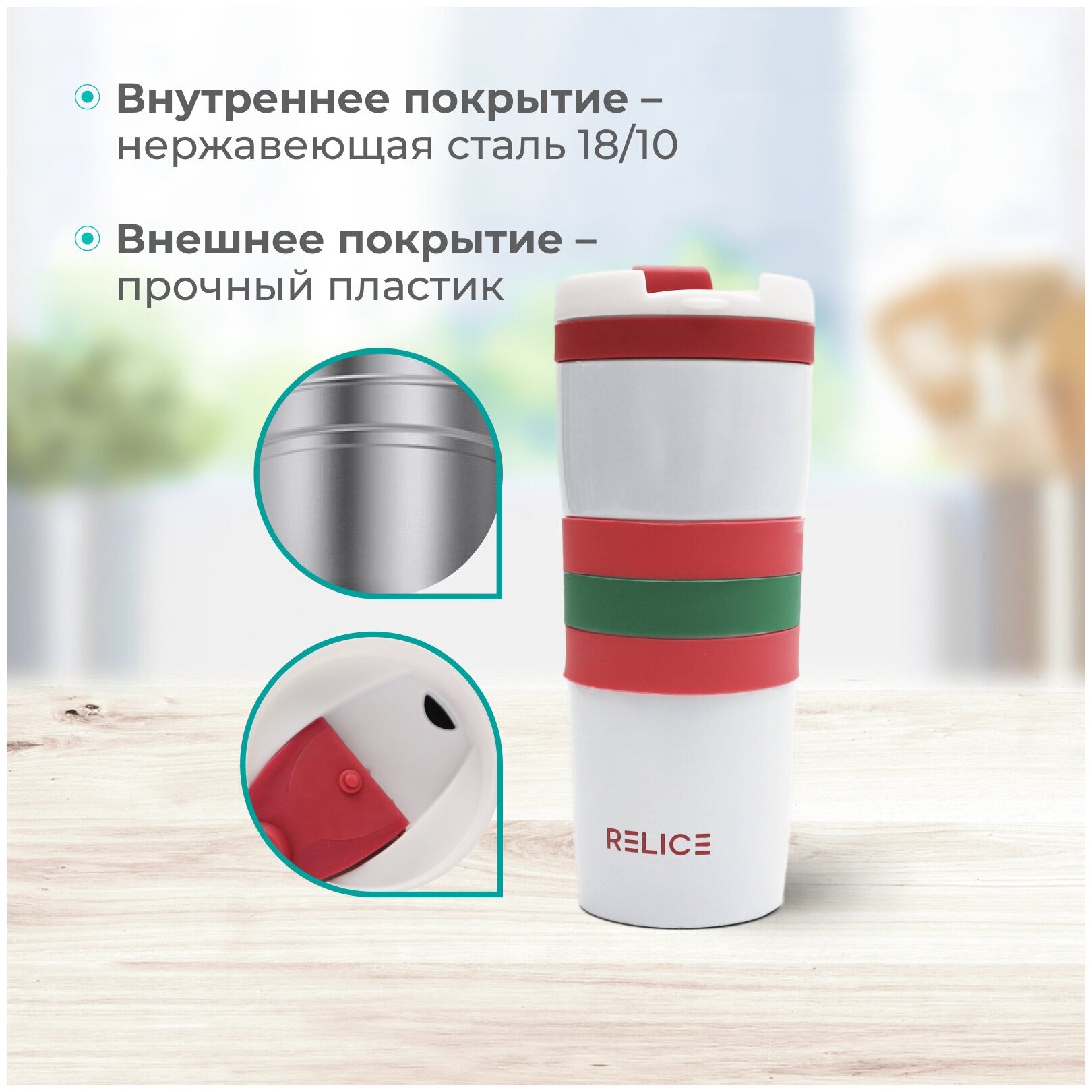 Термокружка выполнена в высокопрочном пластиковом корпусе. Силиконовая вставка обеспечивает надежный хват и предотвращает возможные бытовые ожоги. Крышка с клапаном гарантирует герметичность, что исключает случайное проливание и позволяет длительное время поддерживать оптимальную температуру. Холод и тепло сохраняются на протяжении 6 часов.