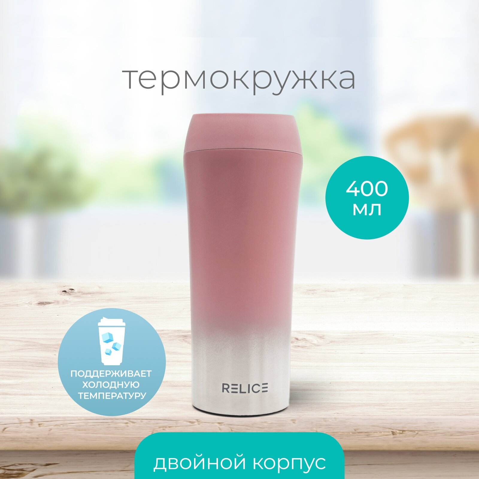 Термокружка объемом 0,4 л сохраняет тепло и холод в течение 6 часов благодаря герметичной конструкции и двойным стенкам. Пластиковая крышка с резьбовым креплением плотно фиксируется на основании, предотвращая проливание. Наличие клапана обеспечивает удобство питья.