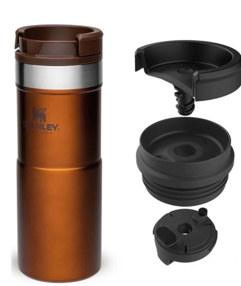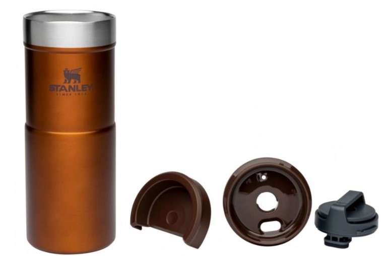 Термокружка 0,35L c корпусом и внутренней колбой из нержавеющей стали 18/8. Поворотная крышка фиксируется в трёх положениях: по часовой стрелке поворот направо – закрыть, налево против часовой стрелки – открыть, чтобы попить, поворот налево после открытого положения – разобрать крышку для мытья