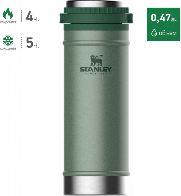 Описание: Сохраняет тепло 4 часа, холод 5 часов, напитки со льдом 20 часов. Герметична. С вакуумной изоляцией. Наружное покрытие – абразивостойкая порошковая эмаль. Интегрированная емкость с ситечком для заваривания молотого кофе. Крышка соединена с корпусом. Для мытья в посудомоечной машине.