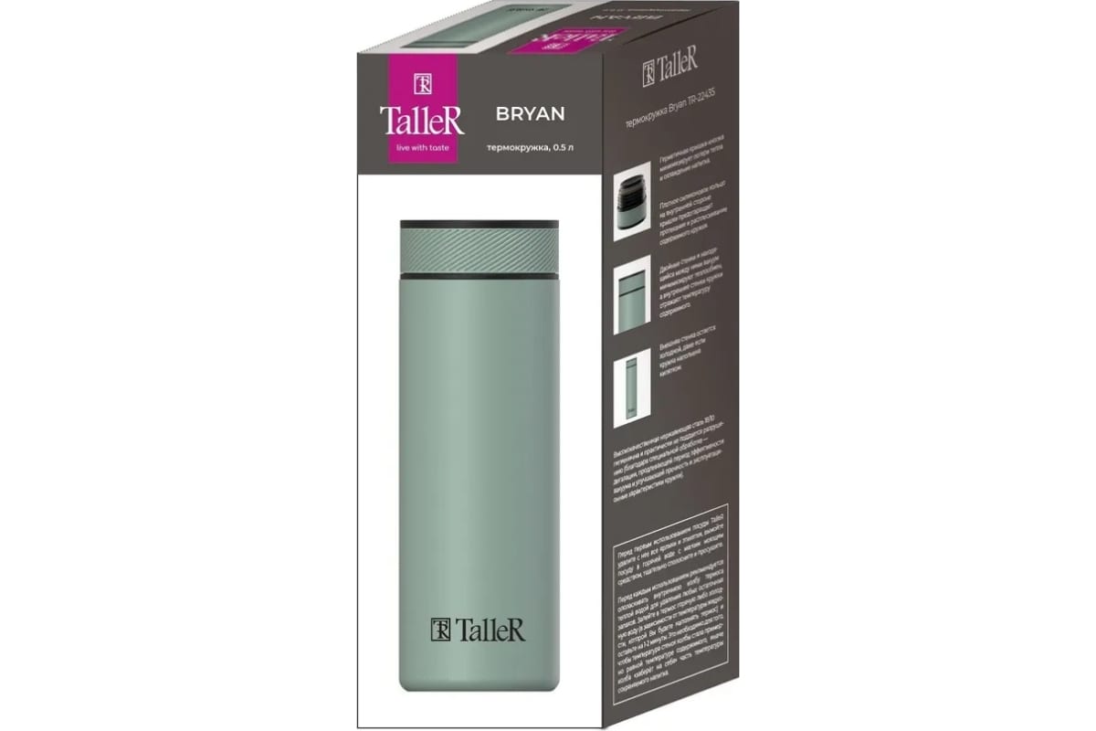 Колба термоса изготовлена из высококачественной нержавеющей стали марки 18/10 (AISI 304). Покрытие - светло-зеленое, матовое.