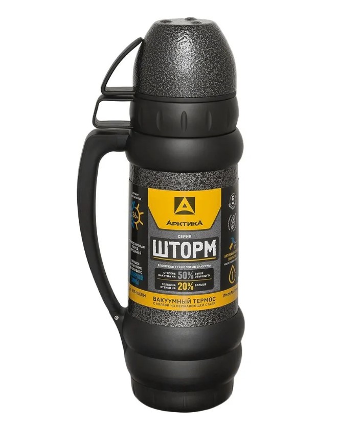 Термос Арктика 109-1000М благодаря утолщенным стенкам, двойному уплотнителю на пробке и особой технологии создания вакуума имеет улучшенные показатели удержания тепла