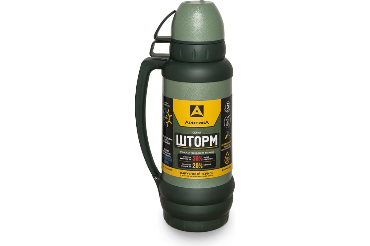 Термос с узким горлом Арктика 1.8 л, зеленый 109-1800М-GN зеленый позволяет наслаждаться любимым напитком длительное время - поддерживает тепло и холод до 48 часов.