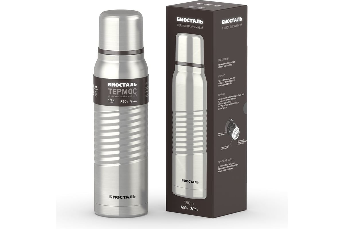Термосы BST-М с матовой полировкой корпуса и максимальными температурными показателями. Все металлические детали термоса изготовлены из нержавеющей стали 18/8 (AISI 304).