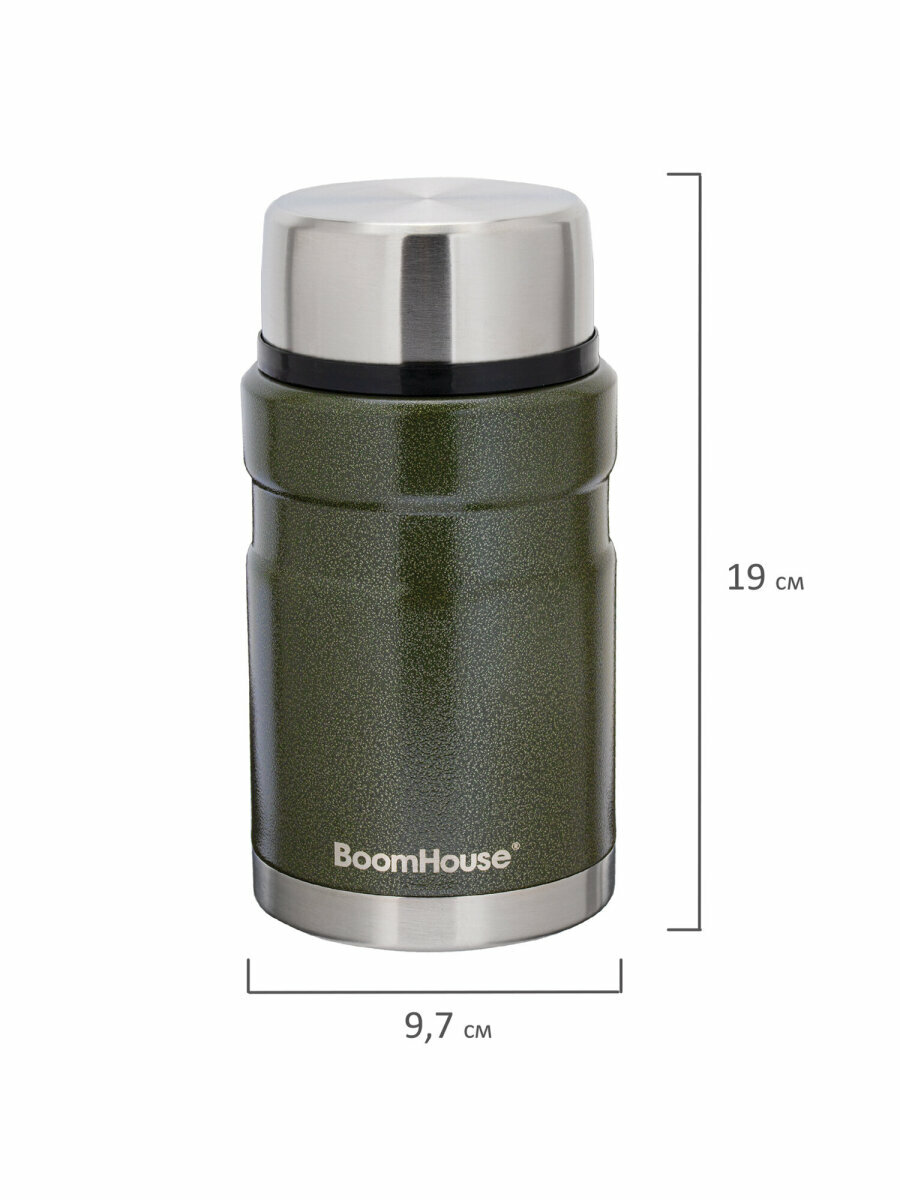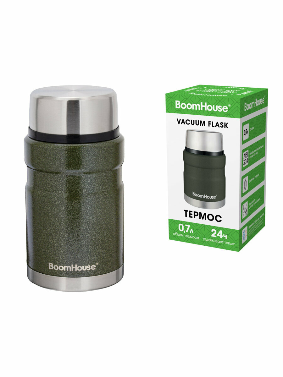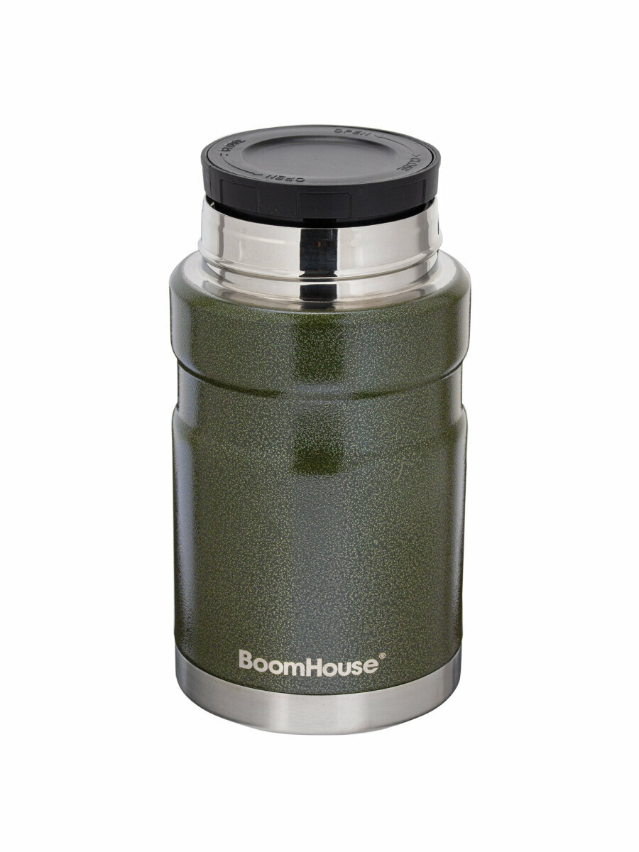 Термос BOOMHOUSE – практичное решение для сохранения температуры еды и напитков до 24 часов! Двойные стенки из нержавеющей стали SUS304 надёжно удерживают тепло, а широкое горло удобно для первых и вторых блюд. Незаменим в поездках, на работе и отдыхе.