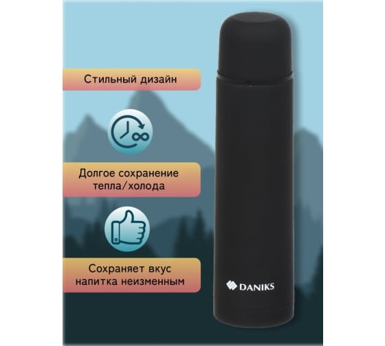 Термоc Daniks обладает высоким качеством, надежностью, компактными размерами и эстетичным дизайном. Горячее остается горячим, а холодное - холодным. Такой термос станет незаменимым в машине, на отдыхе или в путешествии.