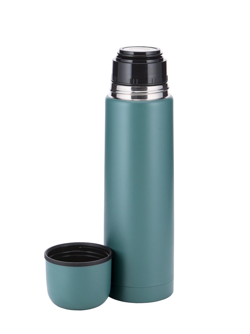 Термос из нержавеющей стали с узким горлом с кожаной вставкой 0,5л.