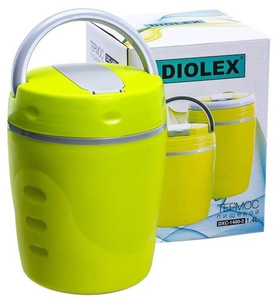 Термос для еды с корпусом из пластика и колбой из нержавеющей стали предназначен для хранения горячих первых и вторых блюд. Термос имеет удобную ручку для переноски. В комплекте есть чашка и ложка из пластика.
