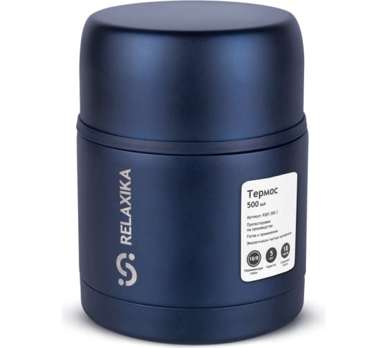 Термос для еды Relaxika 301 0.5 л, темно-синий R301.500.3 выполнен из высококачественной нержавеющей стали и пищевого пластика. В отличии от термоса со стеклянной колбой, термос из нержавеющей стали устойчив к ударам и повреждениям и легок в эксплуатации.